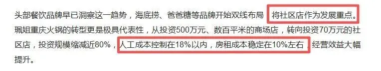 商场店需要更多的服务员、厨师,人工成本占营收的25%-35%,社区店却能压缩到15%左右。