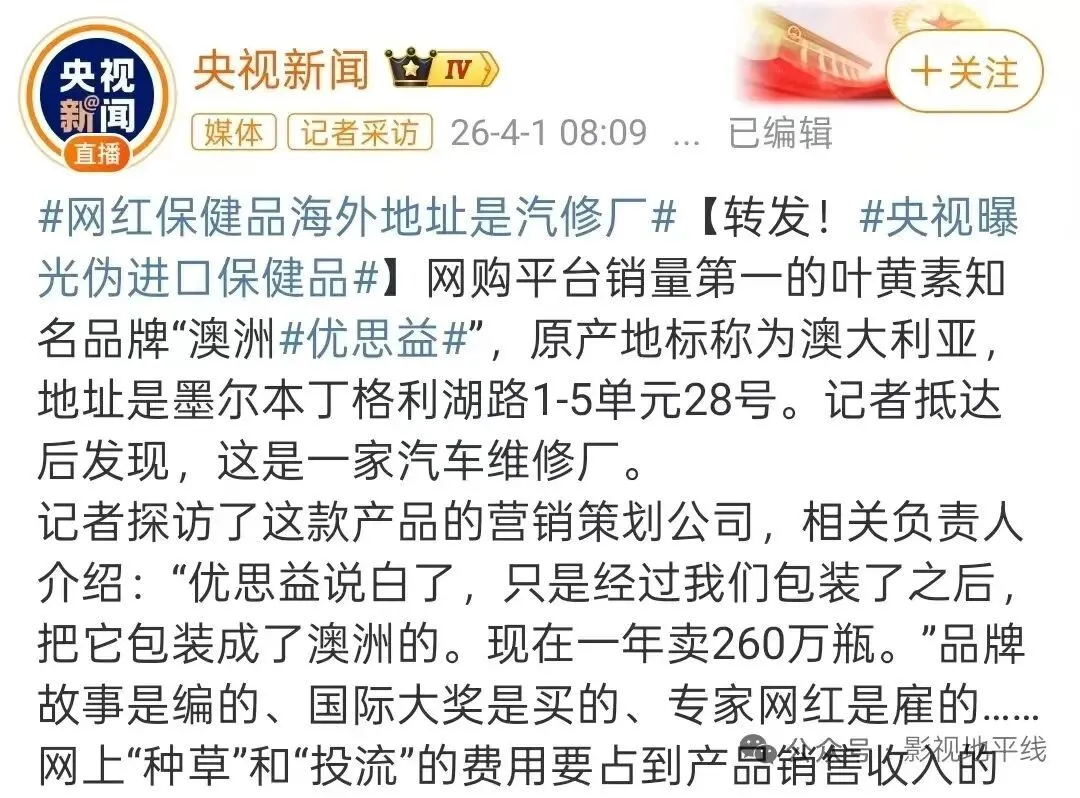 央视的记者顺着包装袋上的澳洲地址摸过去,本以为会看到穿着白大褂的科学家在实验室里研究叶黄素,结果推开门一看,好家伙,是个修车的地址。
