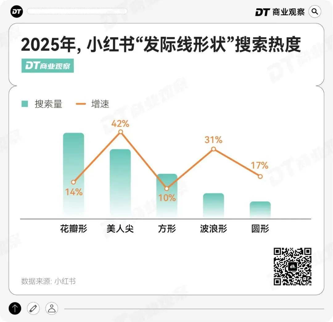 这种对美的追求,也催生出多种发际线流派,花瓣形、美人尖、方形、波浪形、圆形,在小红书上成为热门选择,适配不同脸型的审美需求。