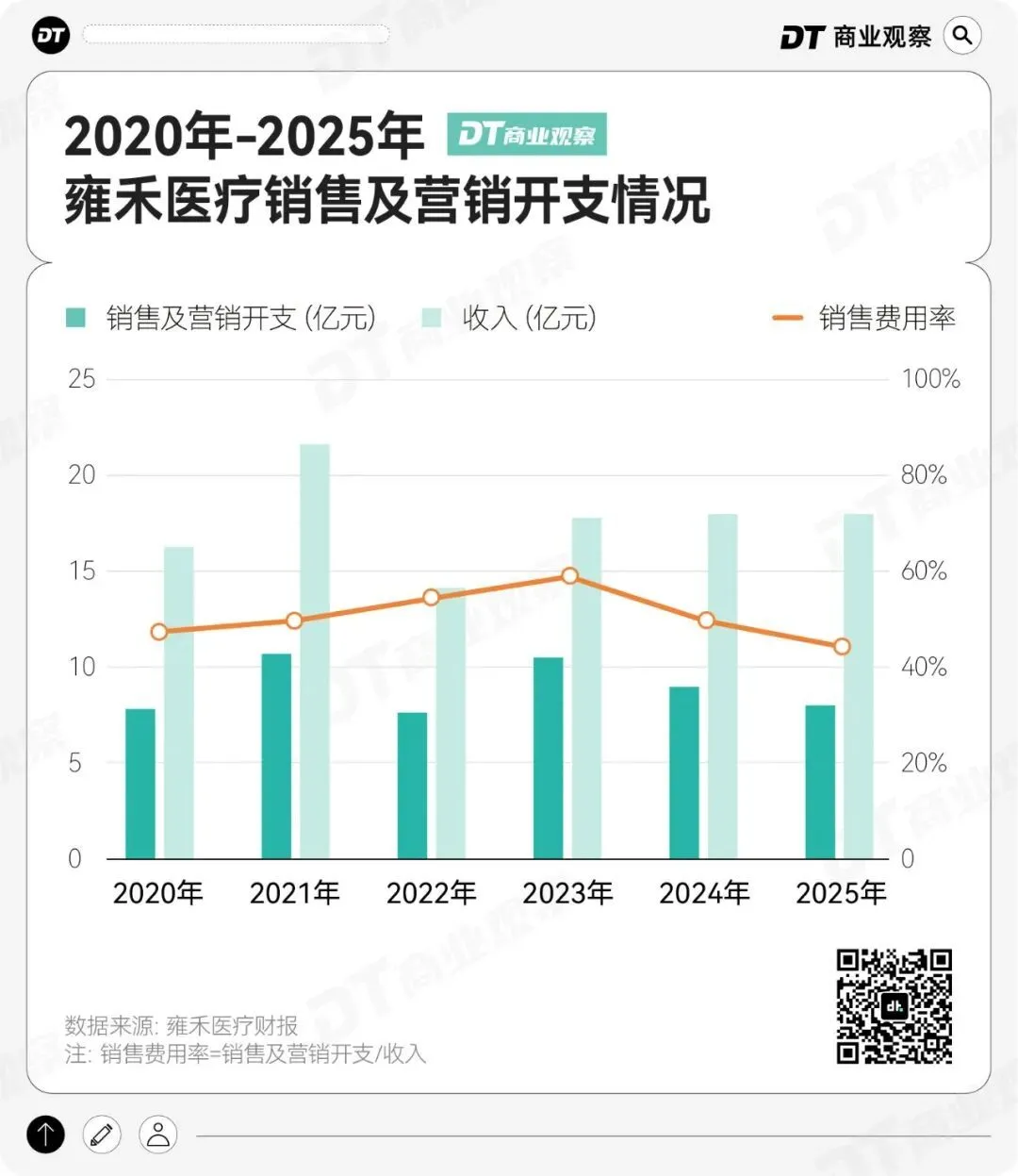 2024年,雍禾医疗的销售费用率为50.01%,相当于每赚1元就有0.5元投入销售营销。2025年,在大力缩减成本的前提下,销售费用率依然高达44.58%。