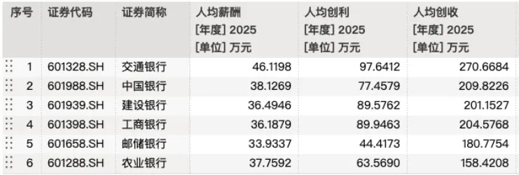 相比之下,六大行科技岗位的招聘热度持续攀升,除了工行净增超4400人外,建行数字金融类人员更是大涨13720人,至30085人。过去一年,六大行科技相关人员净增合计超2.2万人,这些岗位多面向计算机、数学、大数据等专业的年轻人才,首年综合年薪普遍达25万-40万元,远超传统柜员岗位,成为吸引年轻人的核心磁场。或是因为新增科技岗位薪资较高,六大行人均薪酬实现普遍上涨,只有邮储银行略有下降。