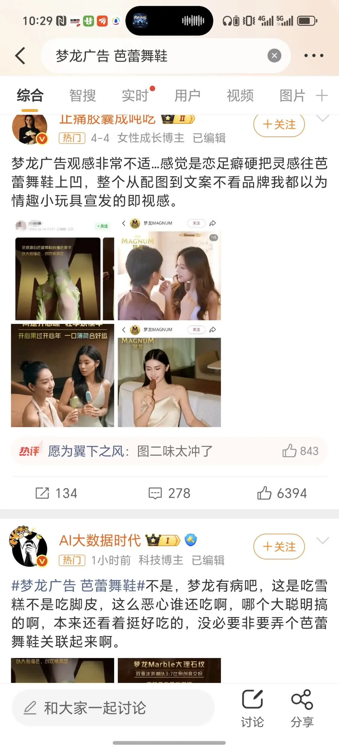 然而,这一创意不仅未获得消费者认可,反而引发强烈不适。大量网友在社交平台发声批评,认为广告从配图到文案都充满“恋足癖”的低俗暗示,将“吃冰淇淋”的愉悦体验,扭曲为“恋足癖把灵感往芭蕾舞鞋上凹”的不适观感,甚至有网友直言“不看品牌,以为是情趣小玩具的宣传”。更有消费者表示,原本对梦龙产品有好感,但广告中“脚皮”“恋足”的联想,彻底破坏了食用体验,“这么恶心谁还吃啊”。