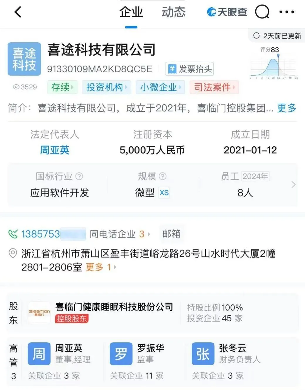 此番出事的喜途科技有限公司,是喜临门在2021年才成立的全资子公司,注册资本仅5000万元,工商信息显示员工规模只有8人,其主要负责酒店工程渠道业务。