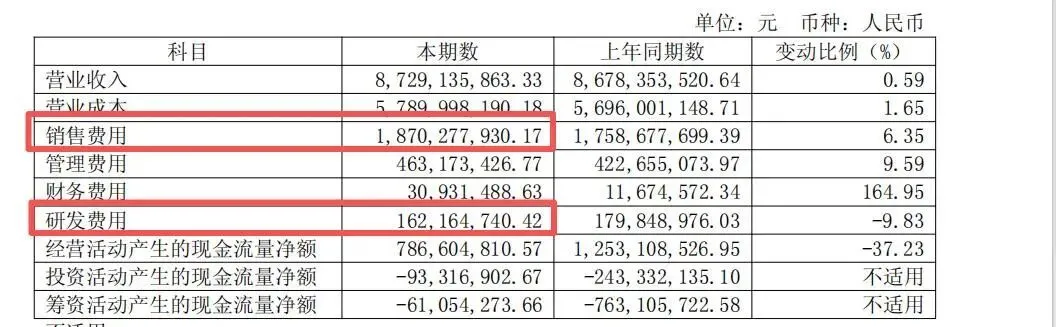 2024年公司销售费用高达18.7亿元,而研发费用仅1.62亿元,销售费用是研发费用的11.5倍,重营销、轻研发的倾向特别突出。