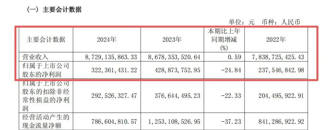 2022年骤降至2.38亿元,2023年又回升至4.29亿元;2024年再次下滑至3.22亿元。