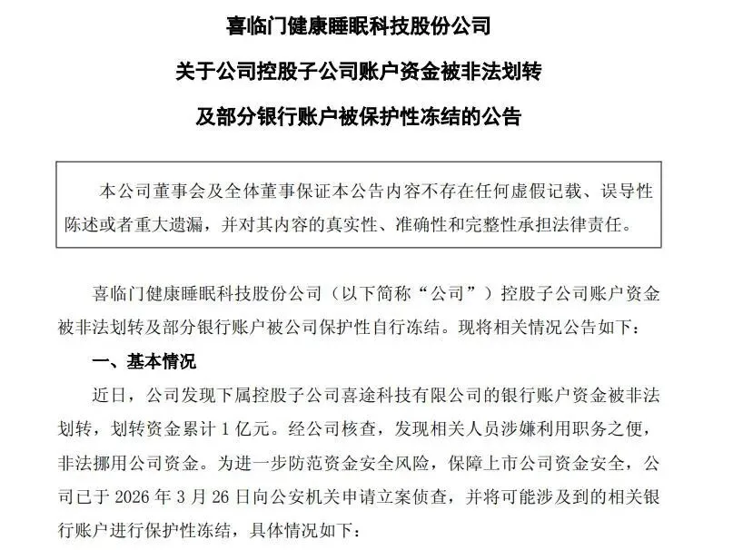 对喜临门而言,1亿资金的挪用案只是表象,公司治理体系的全面失效才是深层问题;比如资金管控松散、人事安排混乱、内控形同虚设、信披违规频发。