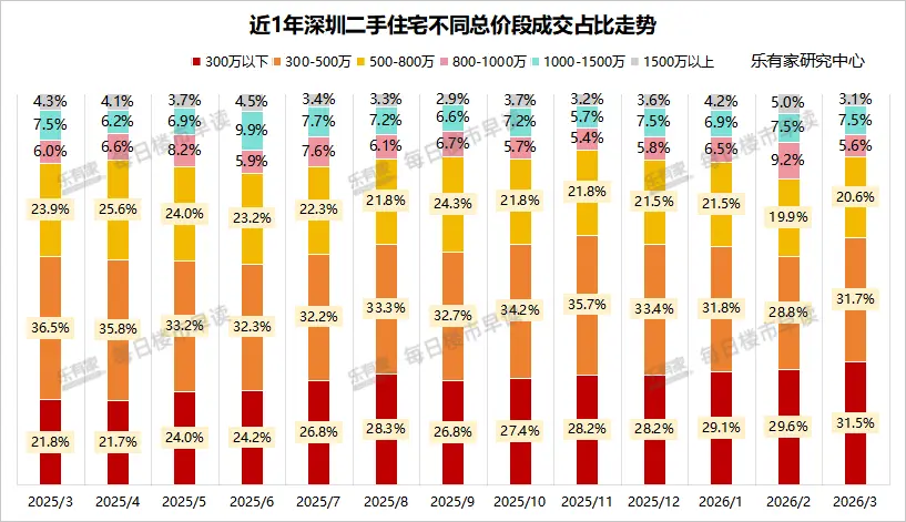 最关键的是,深圳二手房成交当中,300万以下房源占比31.5%,500万以下房源占比63.2%。