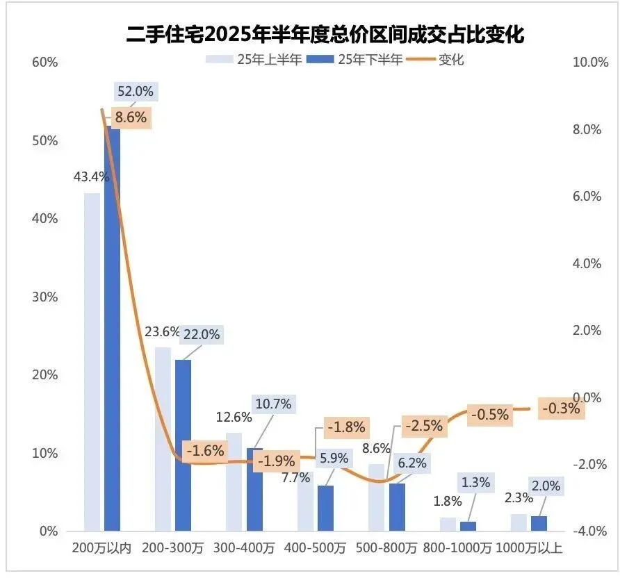 第一,据悉,成交二手房中,北京超过6成成交房源总价在300万以内,上海更夸张,总价300万以下的占比超过7成。