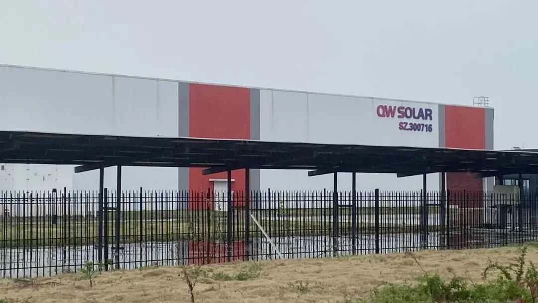 4月8日下午,狂风呼啸,骤雨冲刷着大地。每经记者在泉为科技安徽泗县基地看到,这个曾经号称百亿元投资、千亩用地的县域现象级光伏项目,如今却人烟寥寥。标准化厂房一字排开绵延百米,钢结构的庞大身躯在阴雨天中显得静谧而压抑。厂房多个大门紧闭,停车场空空如也,难以从外观看到一丝生产痕迹。