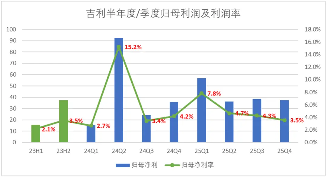 最后来看一下利润表现,也是2025年吉利最饱受争议的财务指标。