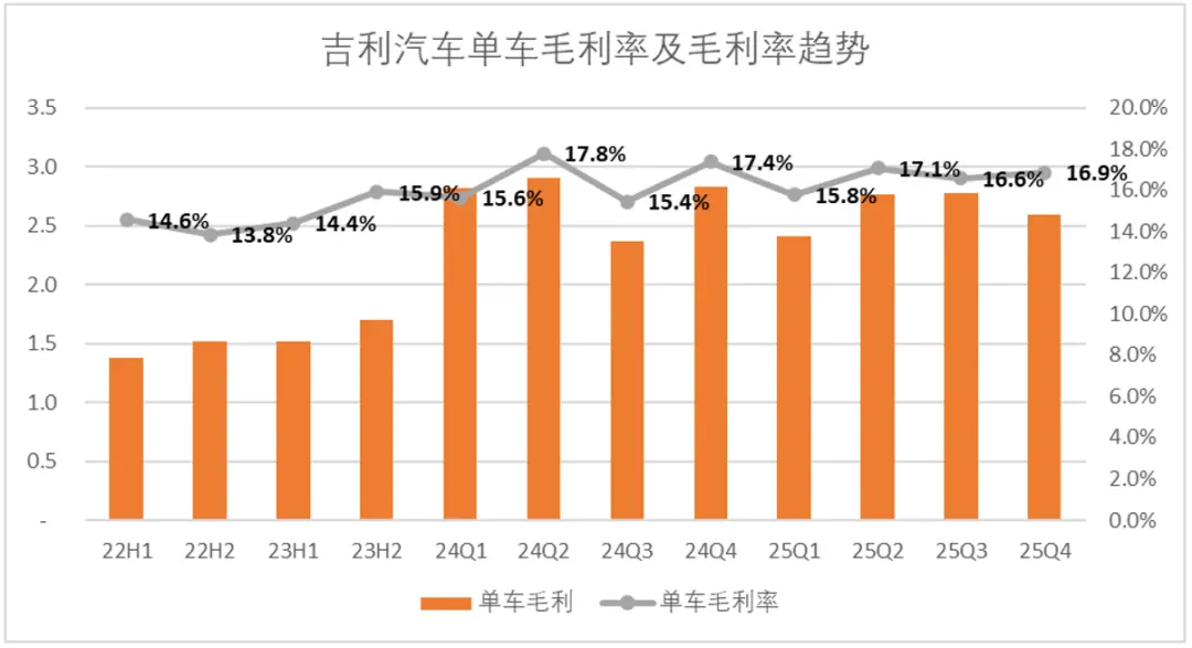 如果2026年海外销量预期能够达标,大概率会带动ASP的增长,我们预估吉利的单车毛利率会在短期内得到修复。