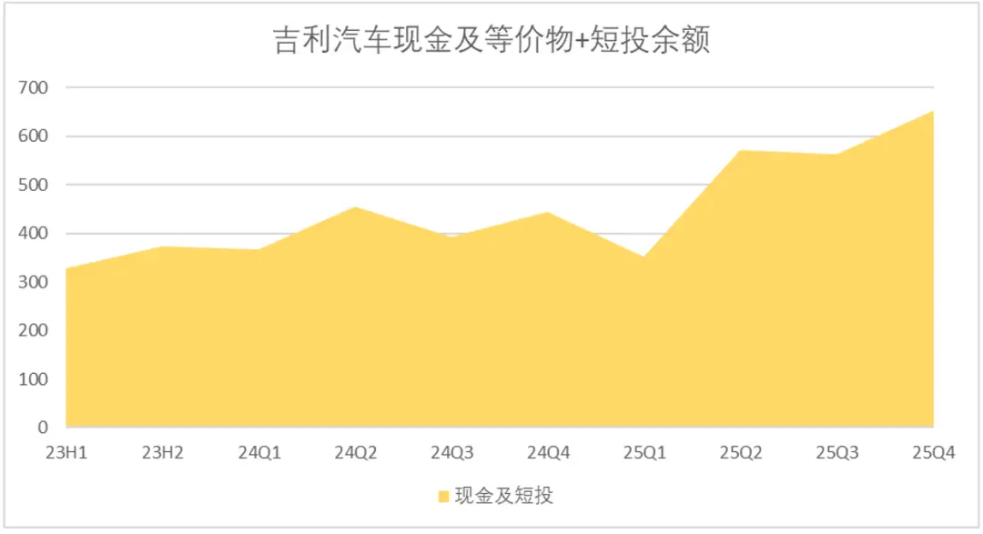 并且对于吉利而言,资本端的压力并不大,截至2025年末,吉利汽车整体的现金等价物+短投累计余额653亿,现金流相对充沛。